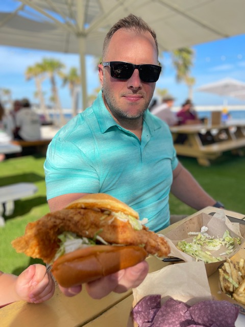 Scott got a huge fish sandwich that he loved.
